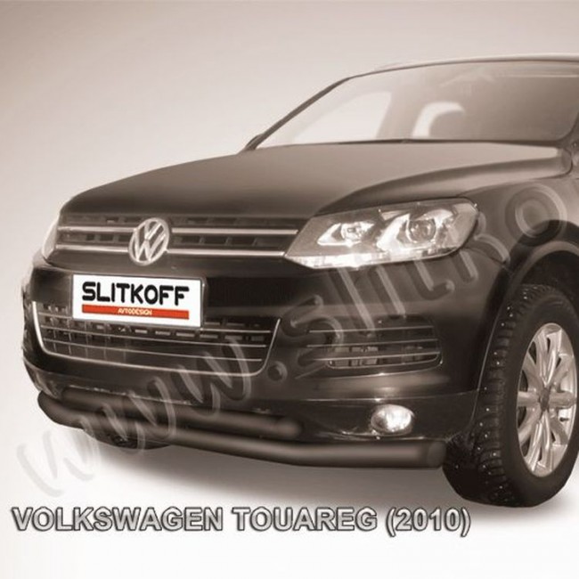 Защита переднего бампера D76+D57 двойная Volkswagen TOUAREG (с 2010) - черная