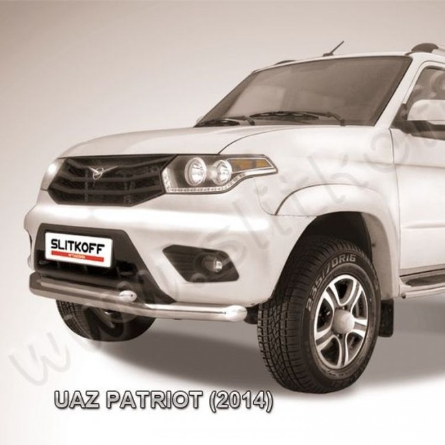 Защита переднего бампера D76+D57 двойная UAZ PATRIOT (с 2014) - нерж.