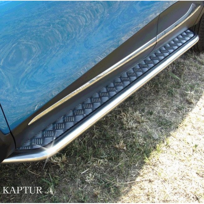 Защита порогов D42 подножки с листом усиленные Renault KAPTUR 4WD (с 2016) - нерж.