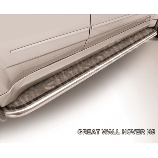 Защита порогов D42 подножки с листом усиленные Great Wall HOVER H5 (с 2010) - нерж.