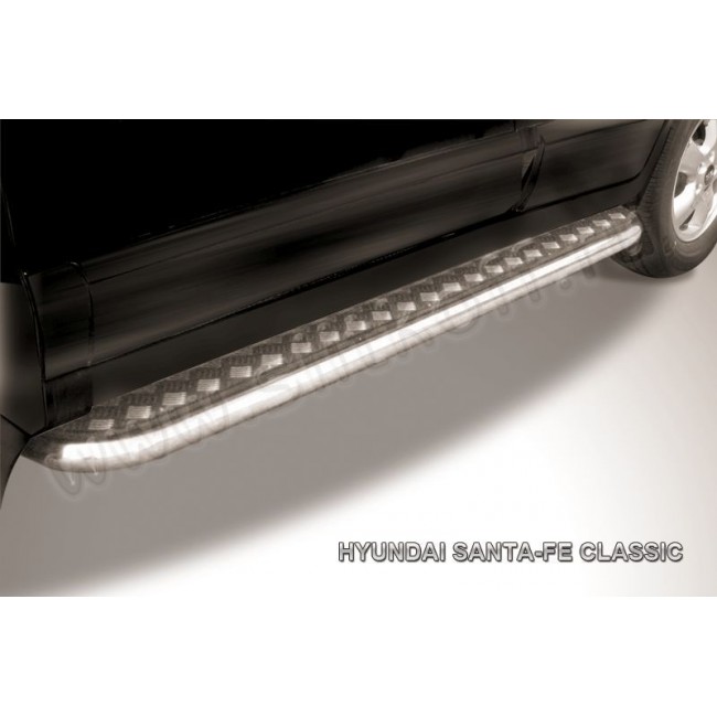 Защита порогов D42 подножки с листом Hyundai SANTA-FE CLASSIC (с Таганрог) (с 2000) - нерж.
