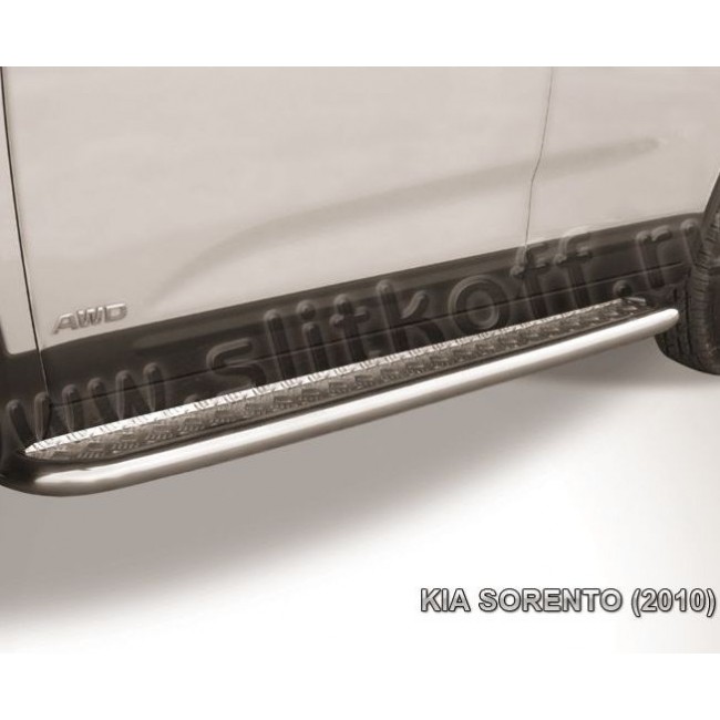 Защита порогов D42 подножки с листом Kia SORENTO (с 2010) - нерж.