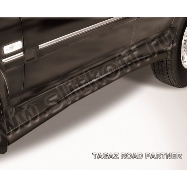 Защита порогов D57 с гибами ТагАз ROAD PARTNER (с 2008) - черная. Материал: Сталь покрытая полимерным покрытием черного цвета.
