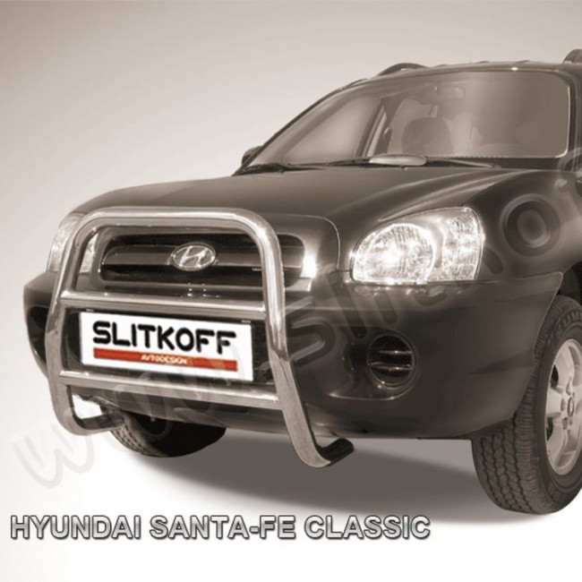 Кенгурятник D57 высокий Hyundai SANTA-FE CLASSIC (с Таганрог) (с 2000) - серебристый мат.