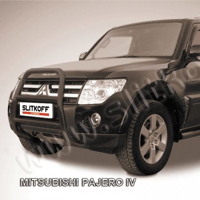 Кенгурятник D57 высокий Mitsubishi PAJERO IV (2006-2021) - черный. Материал: Сталь покрытая полимерным покрытием черного цвета.