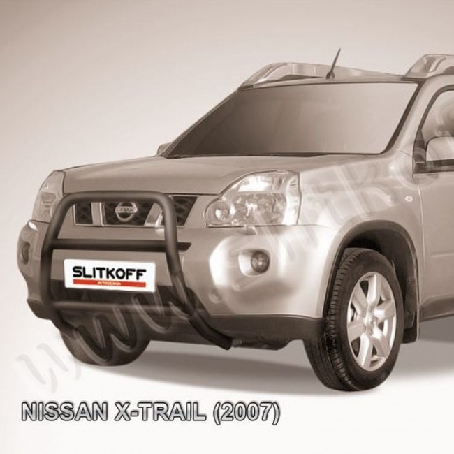 Кенгурятник D57 высокий Nissan X-TRAIL (с 2007) - черный. Материал: Сталь покрытая полимерным покрытием черного цвета.