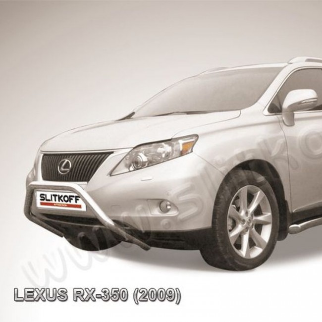 Кенгурятник D57 низкий "мини" Lexus RX-350 (с 2009) - серебристый матов. Материал: Сталь покрытая полимерным покрытием серебристого цвета.