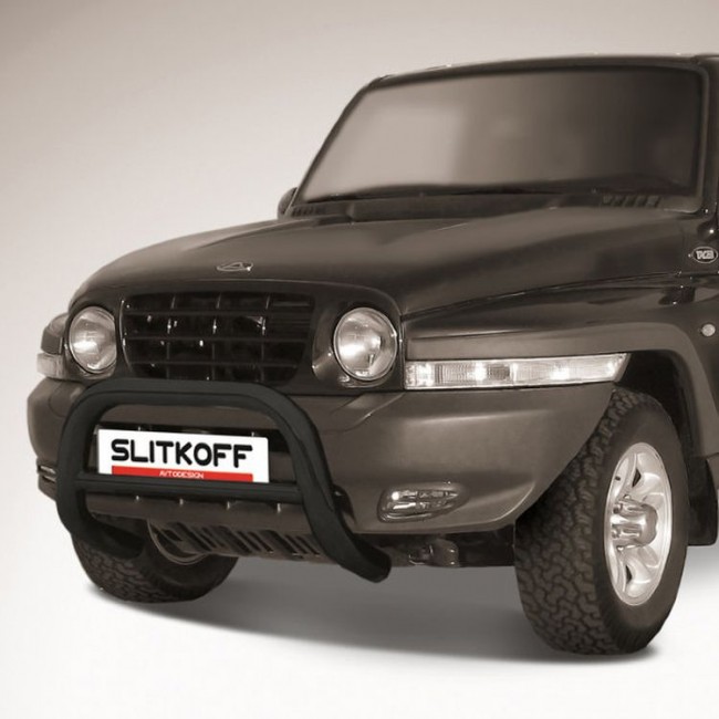 Кенгурятник D57 высокий ТагАз TAGER 5 дв. (с 2008) - черный. Материал: Сталь покрытая полимерным покрытием черного цвета.