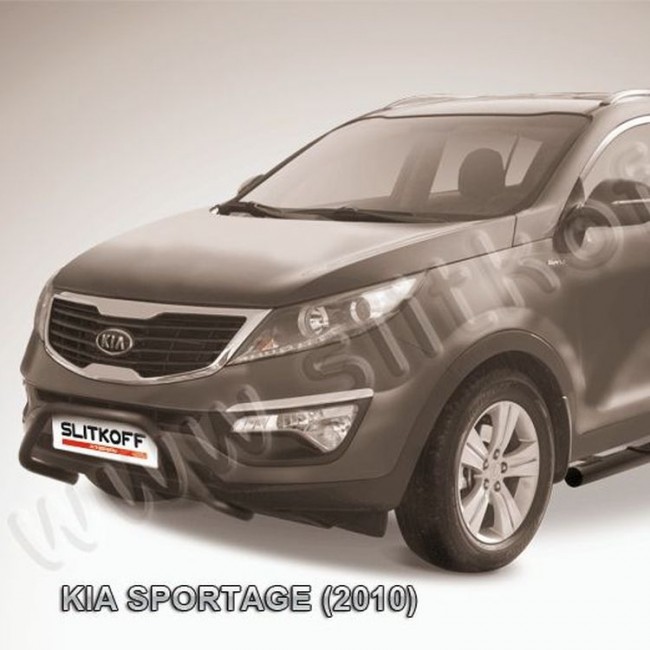 Кенгурятник D57 низкий "мини" Kia SPORTAGE (с 2010) - черный. Материал: Сталь покрытая полимерным покрытием черного цвета.
