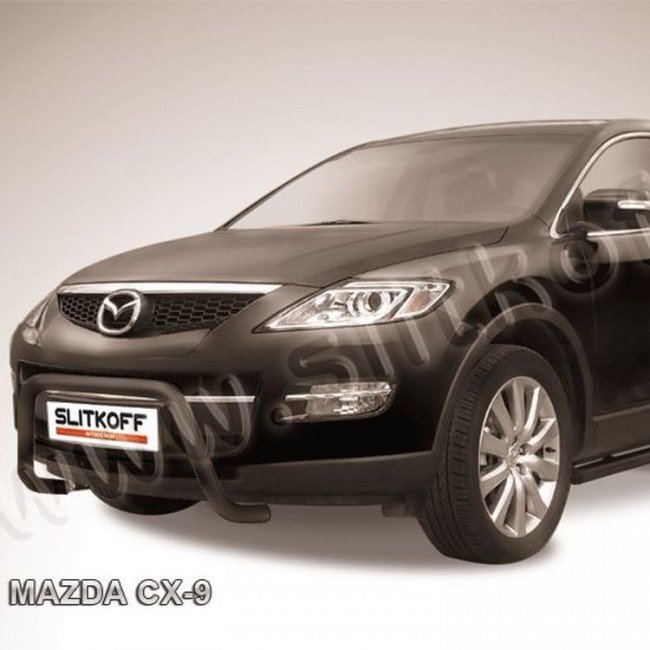 Кенгурятник D57 низкий "мини" Mazda CX-9 (с 2007) - черный. Материал: Сталь покрытая полимерным покрытием черного цвета.