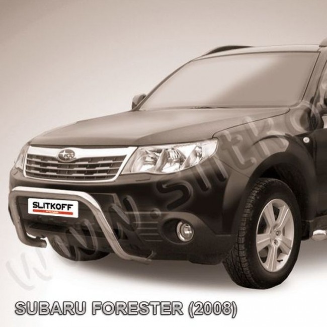 Кенгурятник D57 низкий "рама" Subaru FORESTER (с 2008) - серебристый мат.
