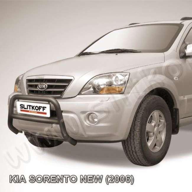 Кенгурятник D57 низкий Kia SORENTO (с 2006) - черный. Материал: Сталь покрытая полимерным покрытием черного цвета.