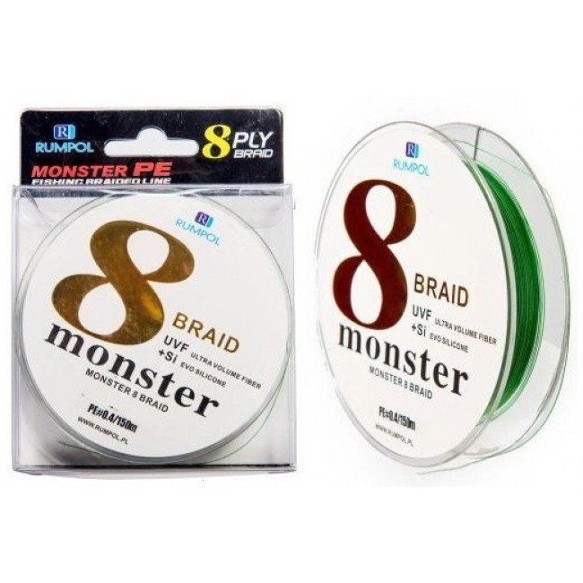 Monster 8 Braid - это серия современных косичек из плотного переплетения 8 микроволокон полиэтилена PE из Японии. Плетеная леска имеет идеально круглое сечение и идеальную гладкость, что очень важно для точной доставки приманки на большие расстояния. Сопротивление направляющих сведено к минимуму.