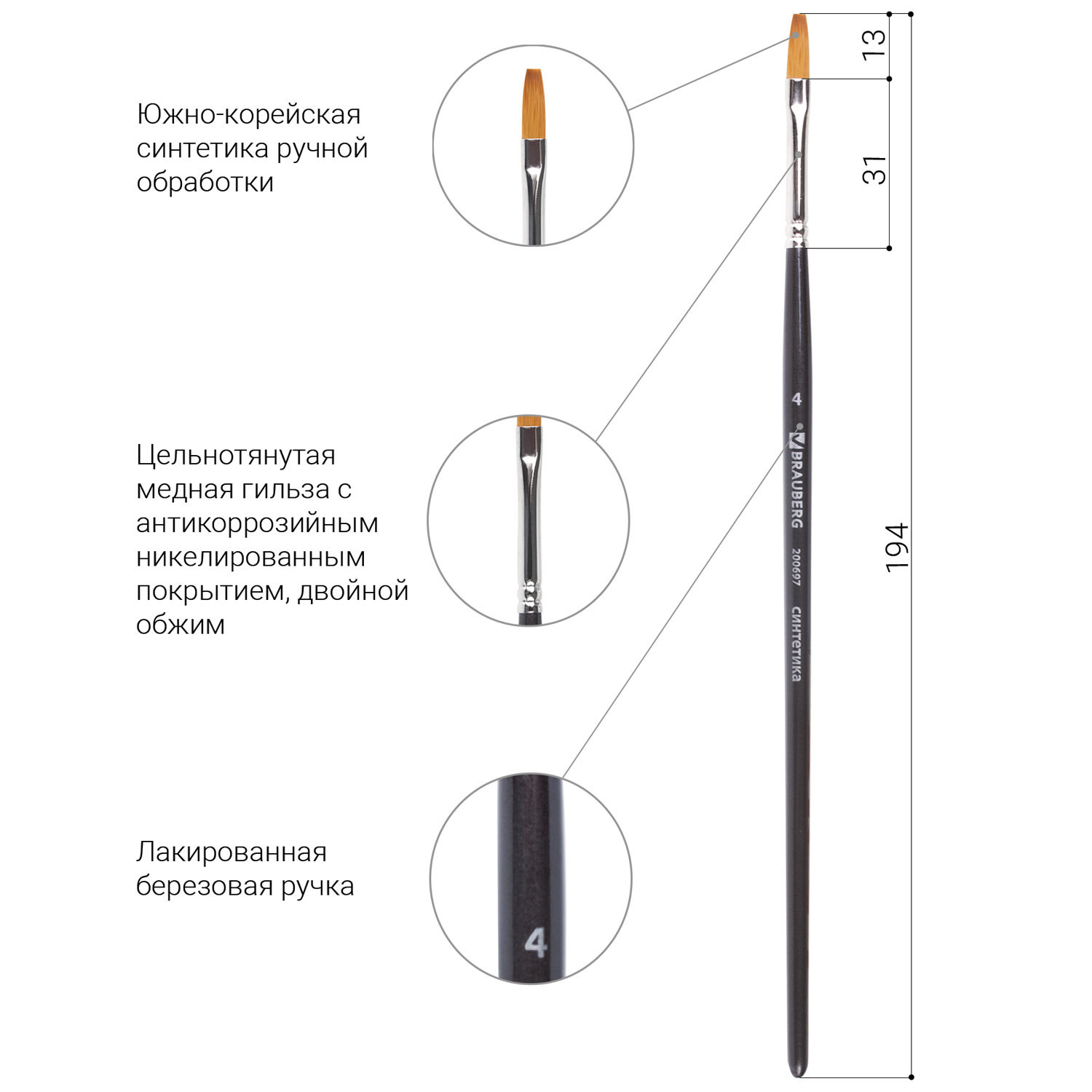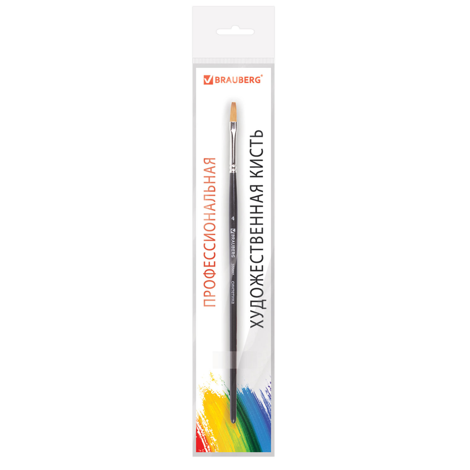 Описание товара Кисть художественная профессиональная BRAUBERG ART CLASSIC, синтетика мягкая, под колонок, плоская, № 4, короткая ручка, (10 шт.)