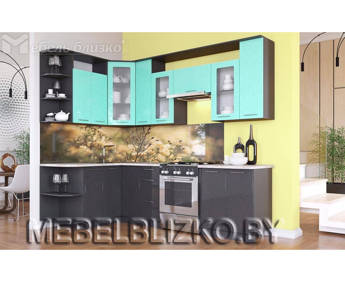 Кухня угловая Метрио 18 черный/бирюзовый металлик