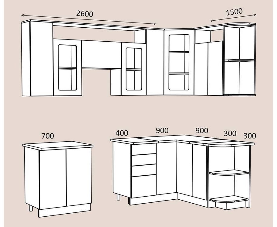 • Глубина нижних шкафов (по столешнице) 600 мм
