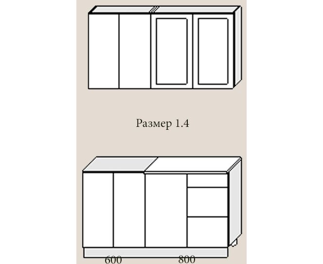 • Длина кухни 1400 мм 1600 мм 1800 мм 2000 мм 2200 мм 2400 мм 2600 мм