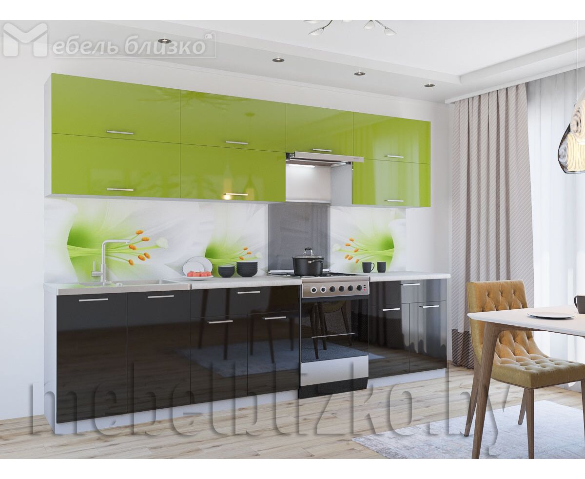 Кухня Мила Глосс 60 (яблоко/черный глянец)
