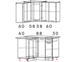 3. Кухня может быть как левостороняя, так и правостороняя. На схемах изображены левосторонние комплекты.
