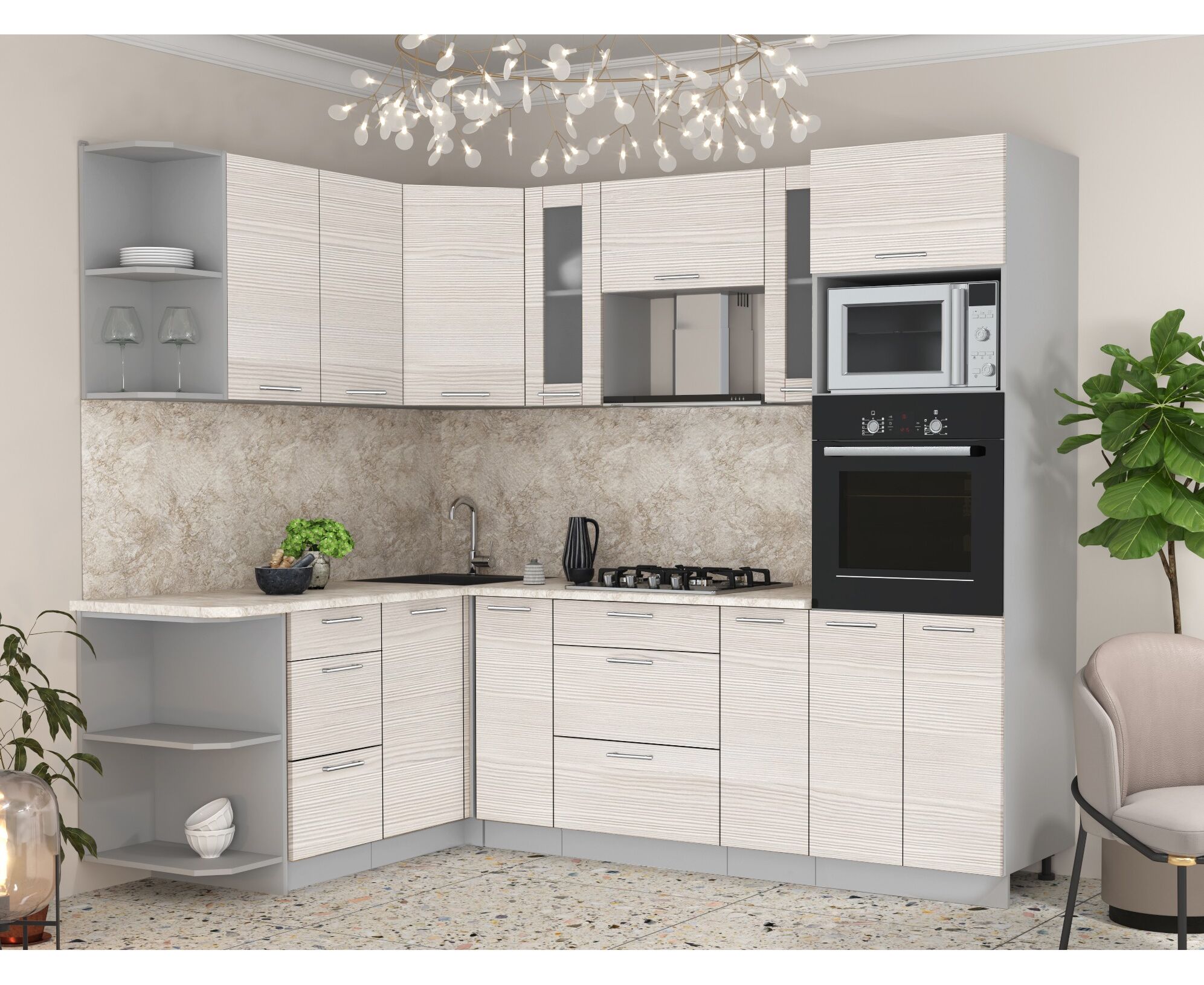 5. Для данной модели кухни предусмотрена модульная программа, что позволяет вносить изменения в стандартные готовые комплекты. Ассортимент и стоимость модулей уточняйте у менеджеров.