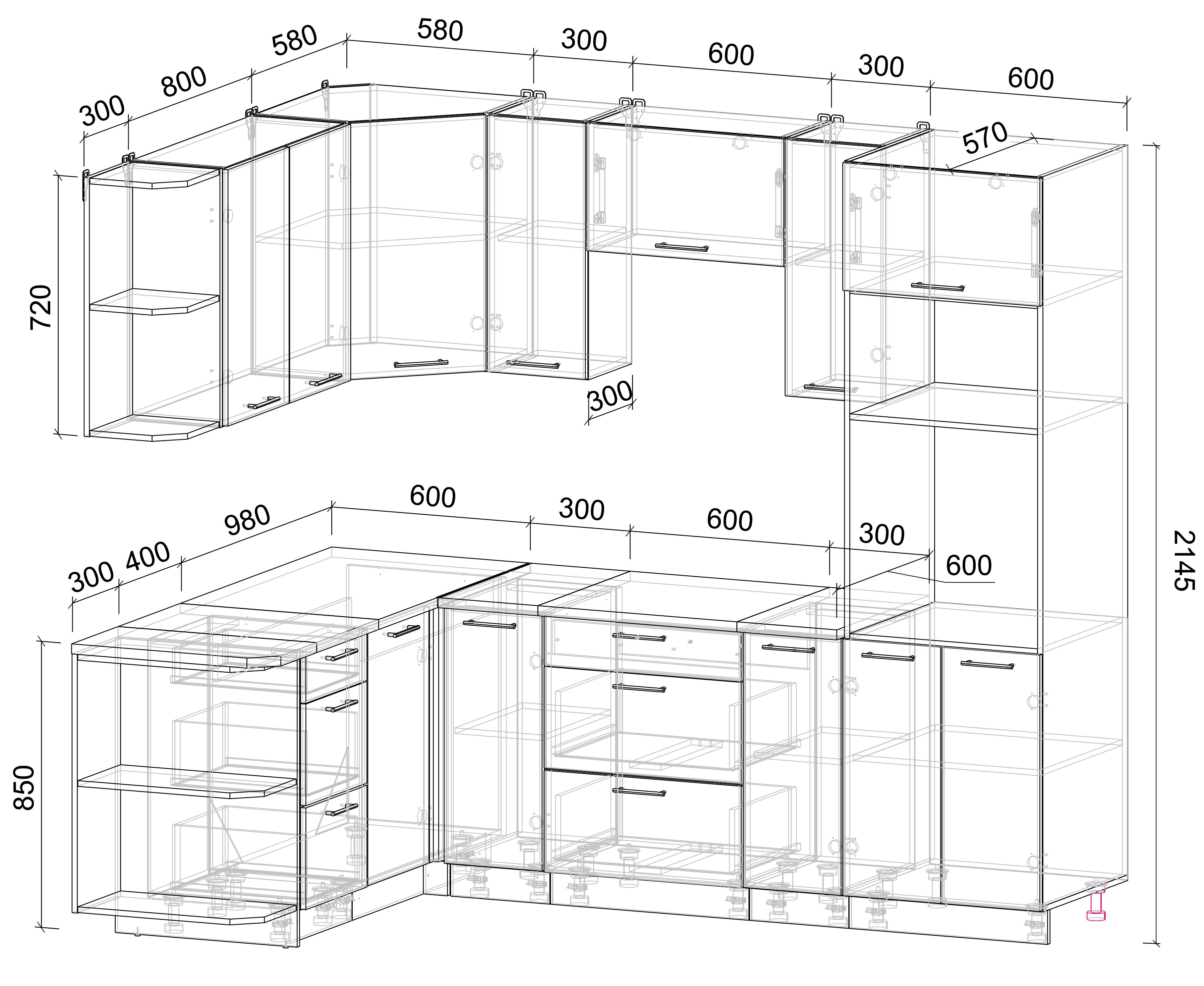 3. Кухня может быть как левостороняя, так и правостороняя. На схемах изображены левосторонние комплекты.