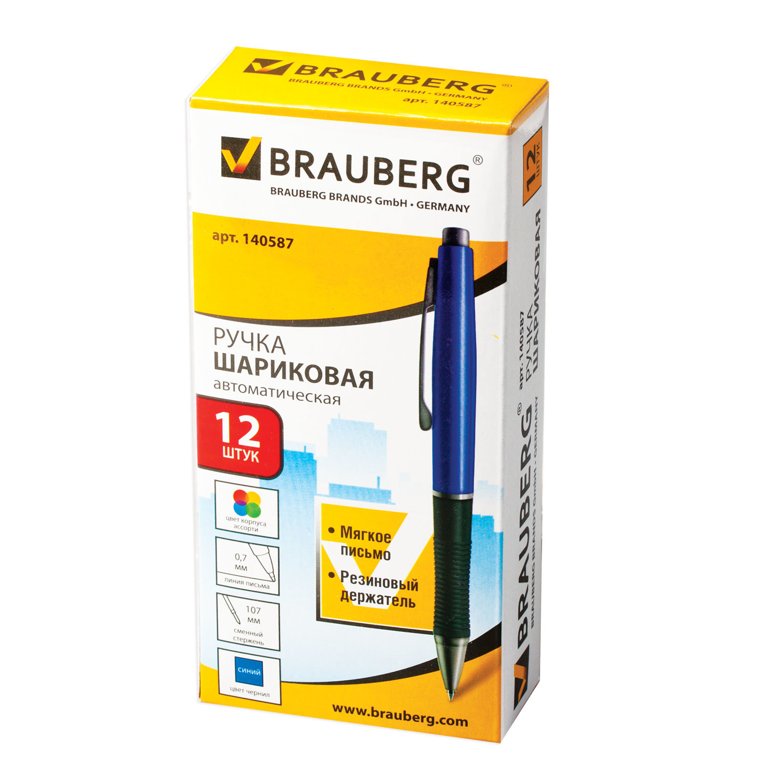 Ручка шариковая автоматическая с грипом BRAUBERG Style, СИНЯЯ, к...