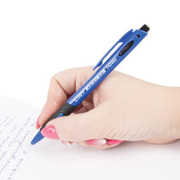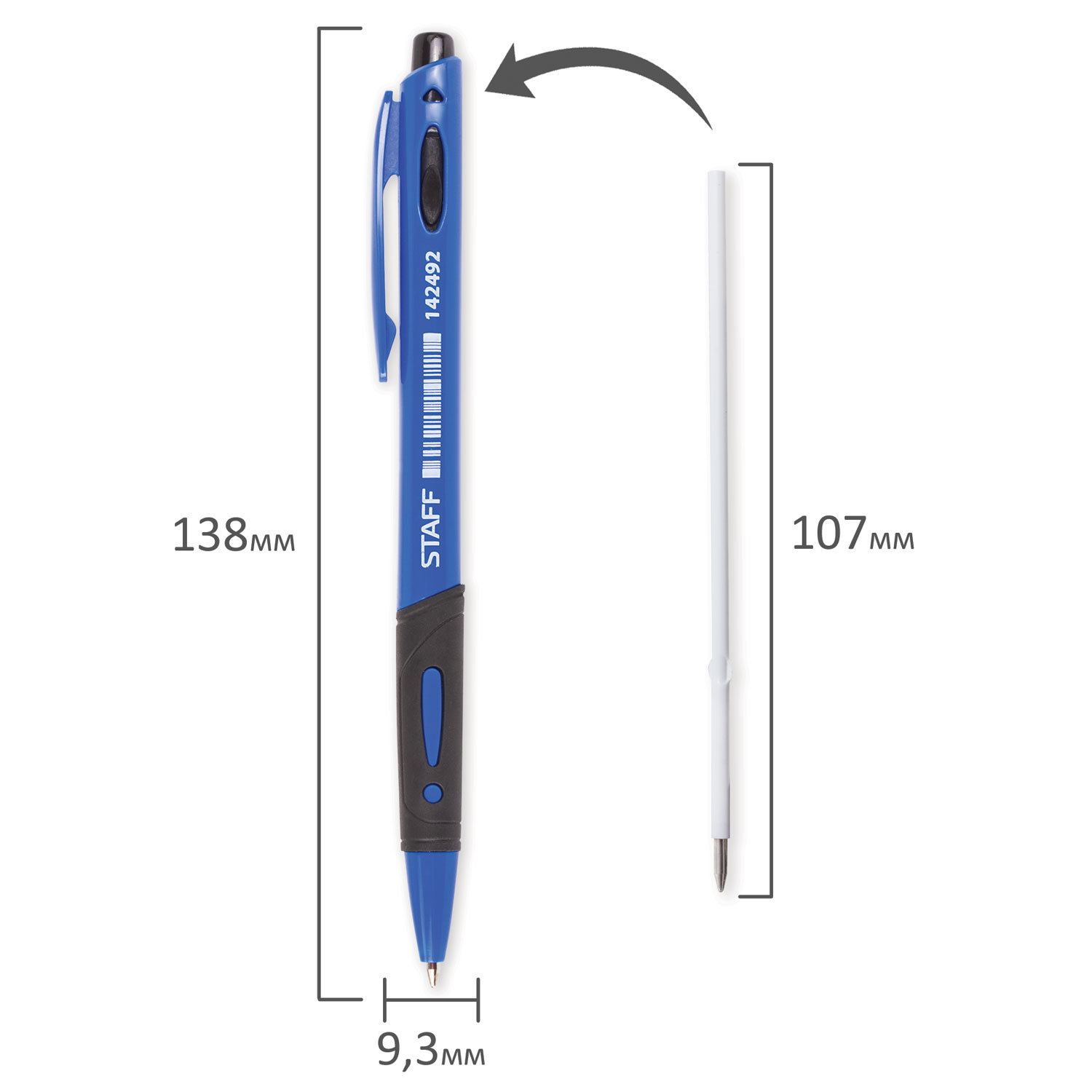 Ручка шариковая автоматическая с грипом STAFF, СИНЯЯ, корпус син...