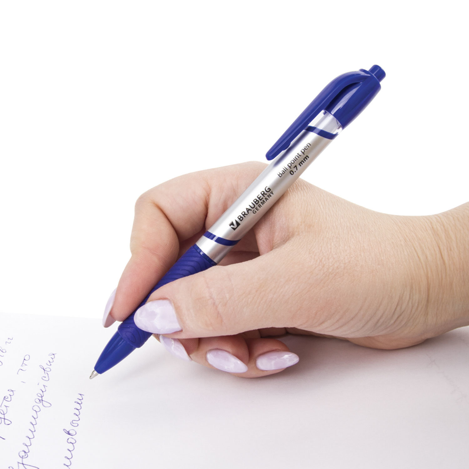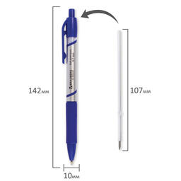 Ручка шариковая автоматическая с грипом BRAUBERG Leader, СИНЯЯ, ...