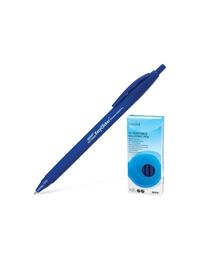 Кнопочная подача стержня. Мягкое покрытие корпуса обеспечит комфортное положение кисти при письме. Цвет корпуса - синий. Стержень снабжен пишущим узлом диаметром 0,7 мм, стандартным типом наконечника. Проводимая линия письма - 0,5 мм.