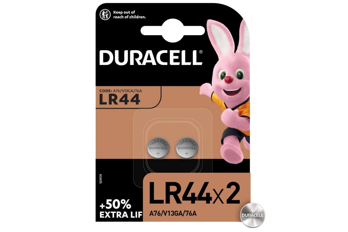 Щелочные батарейки Duracell Specialty LR44 кнопочного типа — до 50 % больше энергии (по сравнению с минимальным средним сроком службы батареек LR44 согласно данным тестирования по стандарту IEC. Результаты зависят от устройства и способа использования).