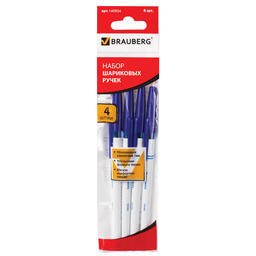 Ручки шариковые BRAUBERG, НАБОР 4 шт., СИНИЕ, Офисная, узел 1 мм...