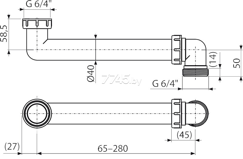 Отвод для сифонов 6/4 ALCAPLAST (P109) для экономии места под раковиной. Отвод подходит для всех сифонов для моек.