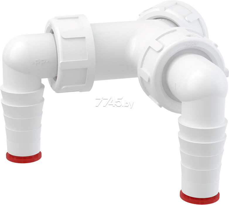Комплектация: корпус колена, колено 17–23 мм 2 шт., прокладка, пробки 2 шт., уплотнение-переходник 2 шт., обратный клапан 2 шт.