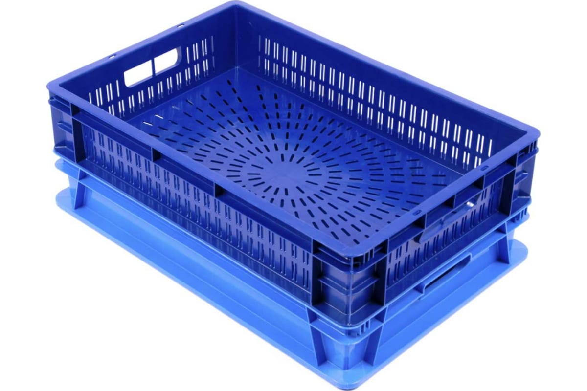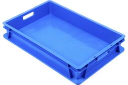 Пластиковый ящик ООО «ПКФ ТОПАЗ» 600x400x150 мм, синий 6415-00-61-П подходит для пищевых продуктов: мяса, рыбы овощей, фруктов и т.д. Имеет крепкие борта, благодаря чему лотки можно устанавливать друг на друга. Изготовлен из качественного пищевого пластика