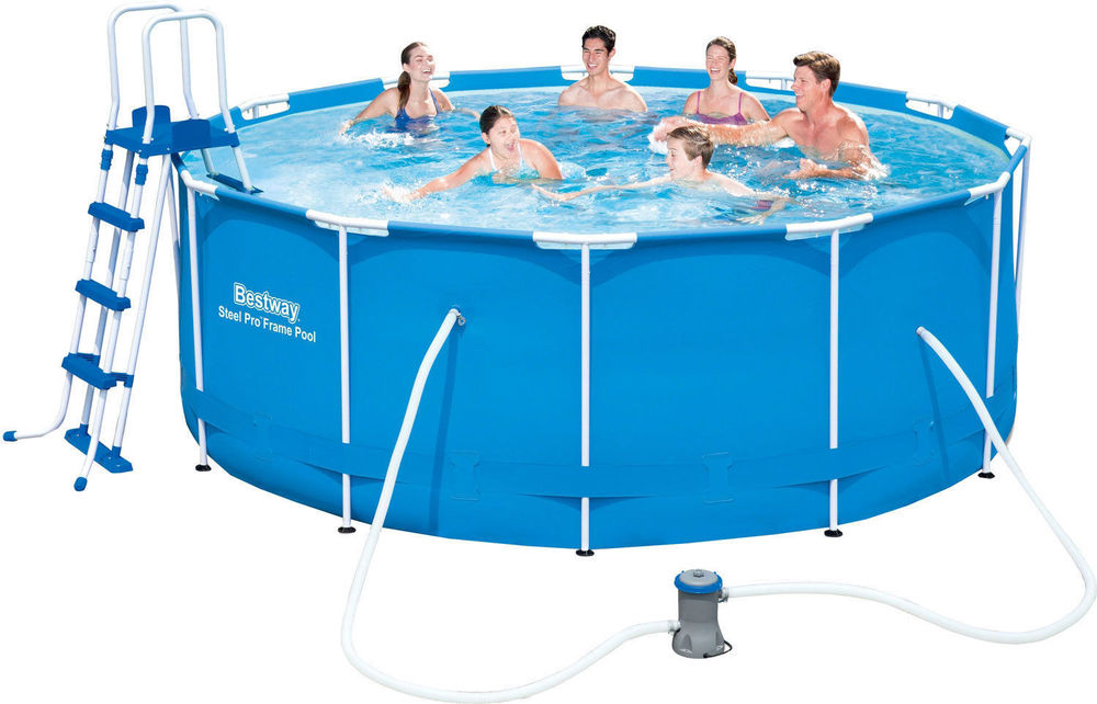 Каркасный, семейный, круглый, 11440 л, комплектация: лестница, фильтр-насос, сливной клапан.