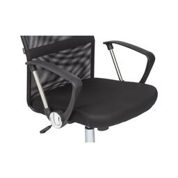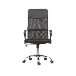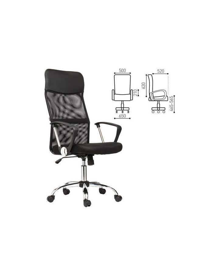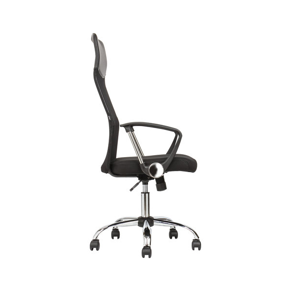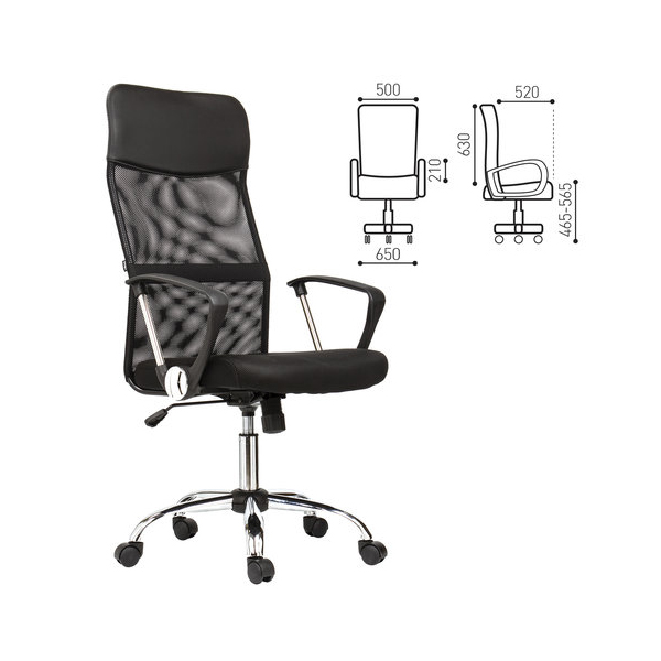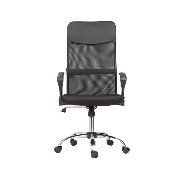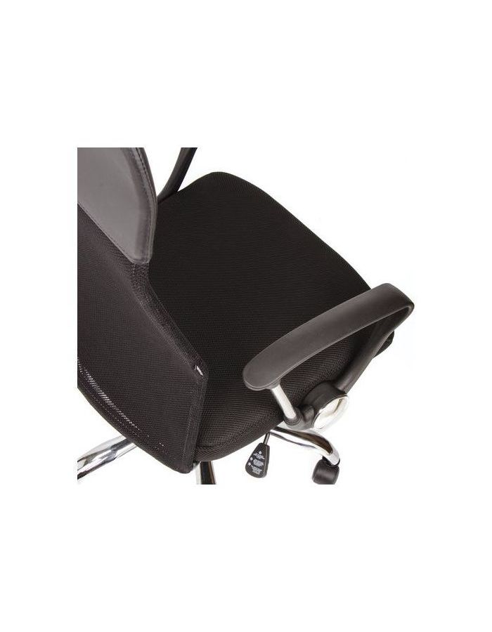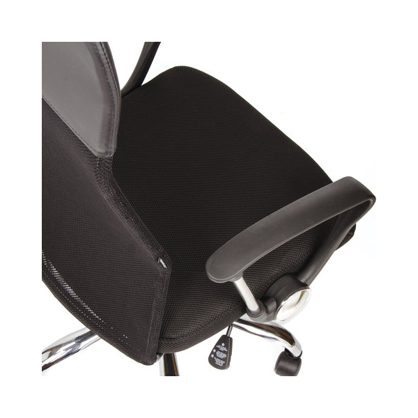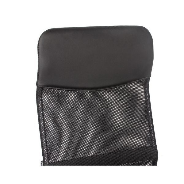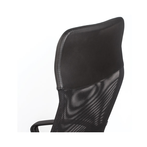 Спинка кресла выполнена из прочного сетчатого акрила. Материал обладает высокой воздухопроницаемостью, легко чистится, способен подстраиваться под физиологические изгибы спины, при этом сохраняет форму и не растягивается. Верхняя, наиболее подверженная износу, часть спинки изготовлена из экокожи. Помимо этого в области поясницы предусмотрена специальная вставка из эластичной ленты для дополнительной поддержки спины.