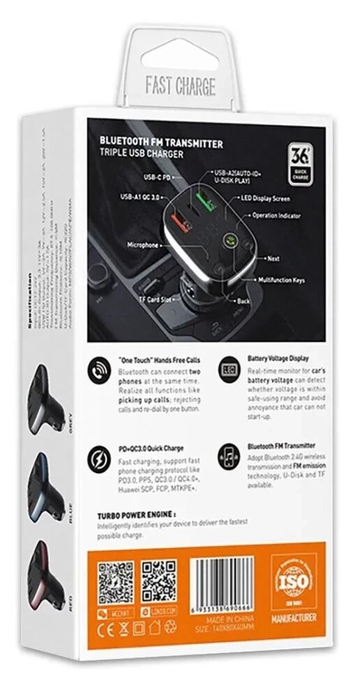 Автомобильная зарядка с bluetooth FM трансмиттером LDNIO C704Q black