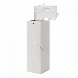Светильник подвесной для треков/шин 4 провода, 12Вт. Цвет свечения ДНЕВНОЙ 4000K, световой поток 1000лм, CRI>90, угол свечения 30°, угол регулировки наклона 90°, угол поворота 355°. Корпус прямоугольный, металл, цвет белый с черной вставкой, IP40. Размер LxWxH 60x60x195мм. Питание AC 220-240V, 12Вт, драйвер встроенный (DC300mA 28-42V).