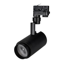 Светильник подвесной для треков/шин 4 провода, 20Вт. Цвет свечения ТЕПЛЫЙ 3000K, световой поток 1600-2000лм, регулируемый угол 20-60°, CRI>90. Корпус круглый, металл, цвет черный, IP20. Размеры DxHxL Ø88x200x162мм. Входное напряжение AC220-240V, мощность 20Вт. Драйвер встроенный (30-42V, 500mA).