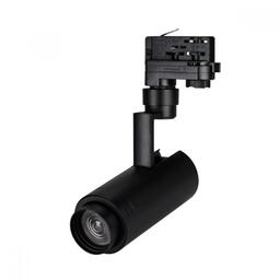 Светильник подвесной для треков/шин 4 провода. Мощность 20 Вт, св. поток 1651 лм, 83 лм/Вт, теплый 3000 K, CRI98, изменяемый угол 20-60°, напряжение питания 230 В. Черный корпус из алюминия, материал линзы PMMA, степень защиты IP20. Размер: длина 162 мм, ширина 88 мм, высота 200 мм. Монтаж на трек 3-фазный. Драйвер 30-42 В, 500 мА, пульсация <1%.