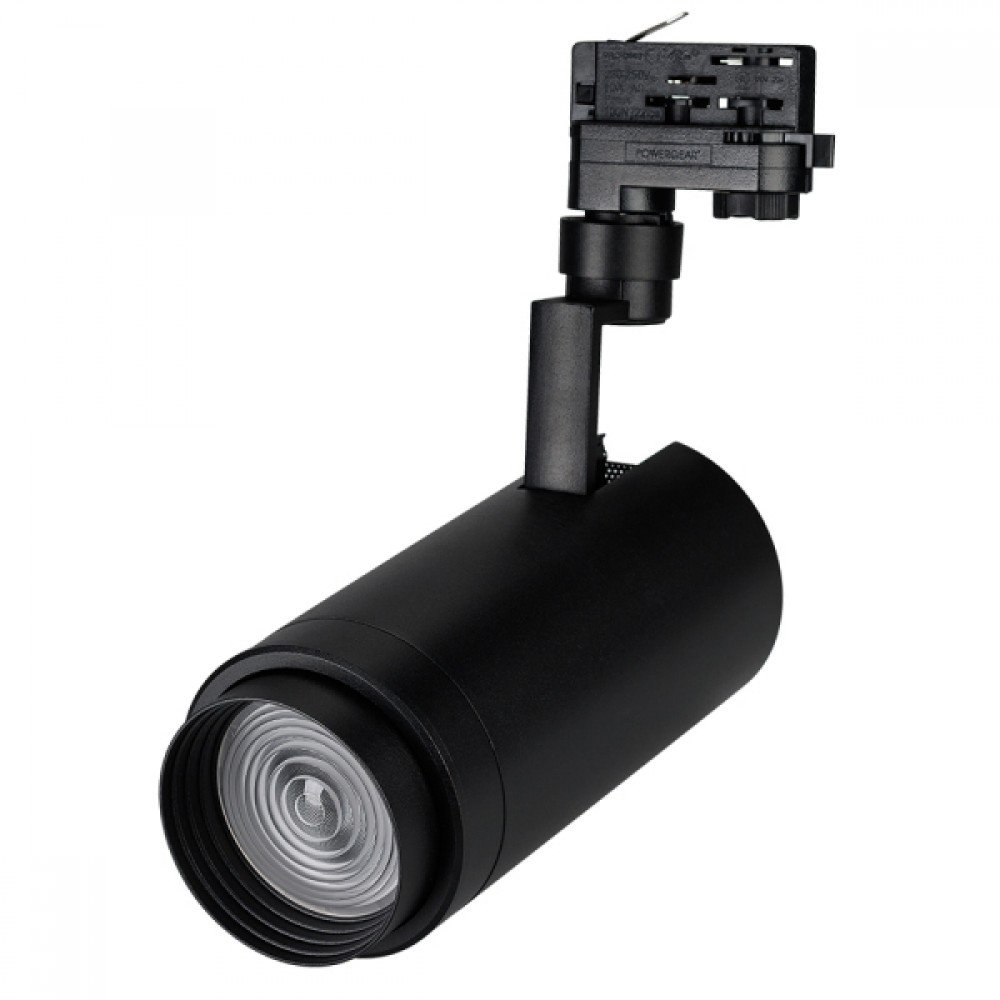 Светильник подвесной для треков/шин 4 провода для продуктов. Мощность 30 Вт, св. поток 2402 лм, 80 лм/Вт, специальный холодный 7500 K для рыбы и морепродуктов, изменяемый угол 20-60°, напряжение питания 230 В. Черный корпус из алюминия, материал линзы PC/PMMA, степень защиты IP20. Размер: диаметр 100 мм, высота 220 мм. Монтаж на трек 3-фазный. Драйвер 33-44 В, 750 мА, пульсация <1%.