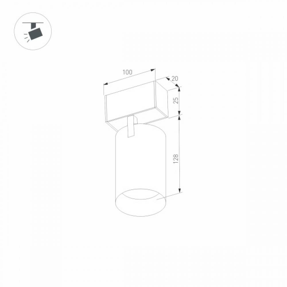 Светильник поворотный для магнитных треков шириной 25 мм, 12 Вт. Цвет свечения ТЕПЛЫЙ 3000K, световой поток 840лм, угол 30°, CRI>90. Корпус прямоугольный, металл, цвет черный, IP20. Размеры LxWxH 100x20x150 мм. Входное напряжение DC24V, мощность 12 Вт. Драйвер DС24V/AC230V поставляется отдельно.Диаметр светоизлучающего модуля 35 мм. Диммируется только с 026407, 027633.