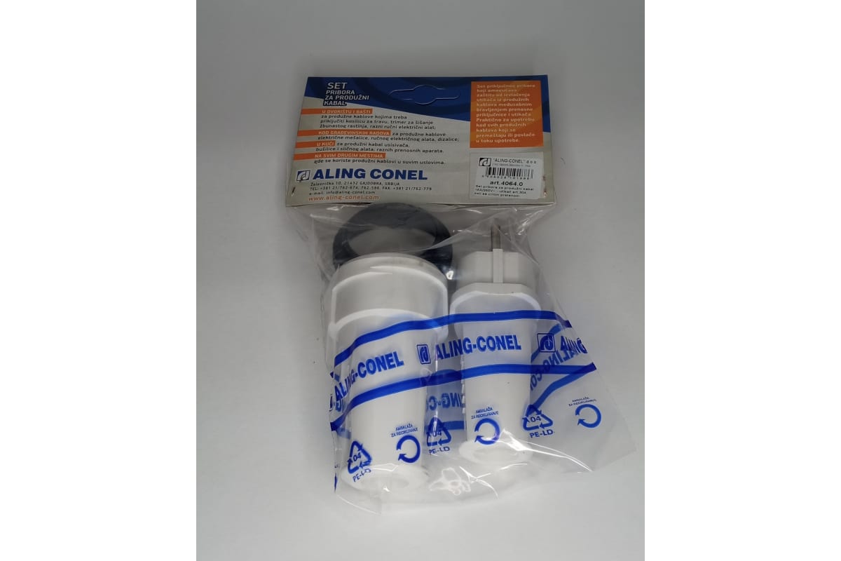 Комплект вилка и розетка со стопорным кольцом Aling-conel 16А 250В, белый 4064.0 142003 для удлинения кабеля "CONEL". Возможность крепления кабеля диаметром 11 мм. Изготовлены из материала, устойчивого к полировальному кольцу, предотвращающего заедание выдергивающего штекера. Стандарт : МЭК 60884-1.