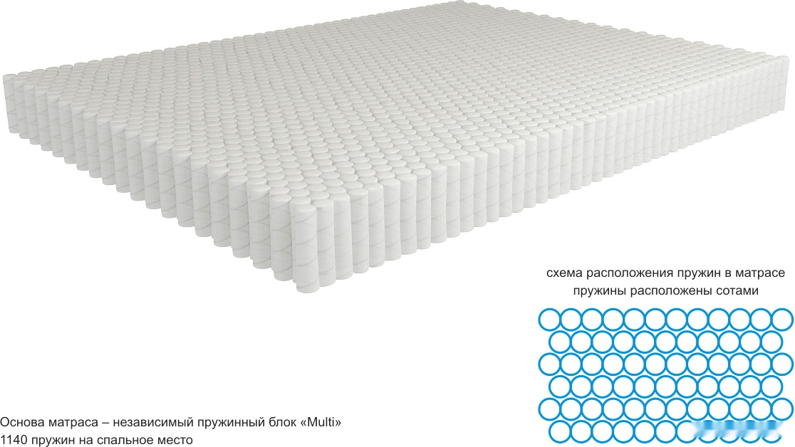Ортопедический, независимый пружинный блок, жесткость: средний, 140 кг на место, высота 20 см.