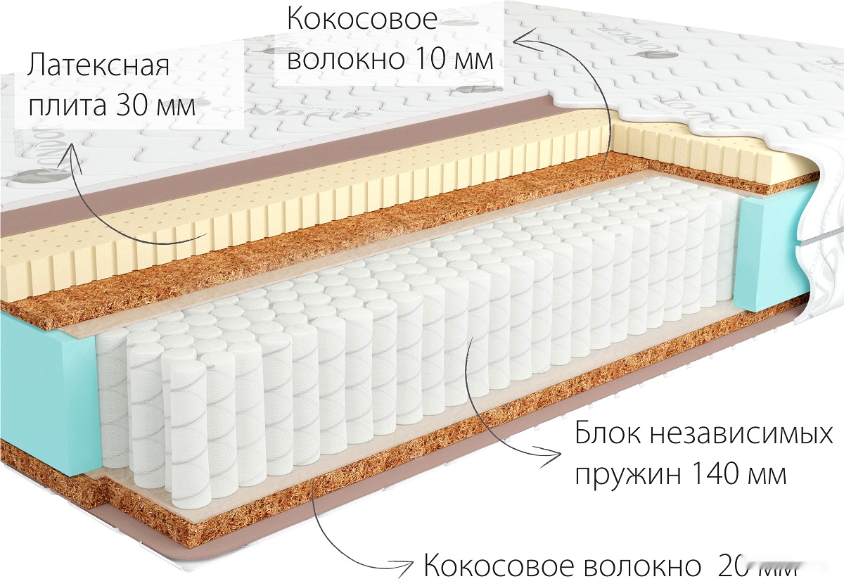 Ортопедический, независимый пружинный блок, жесткость: мягкий, 140 кг на место, высота 21 см.