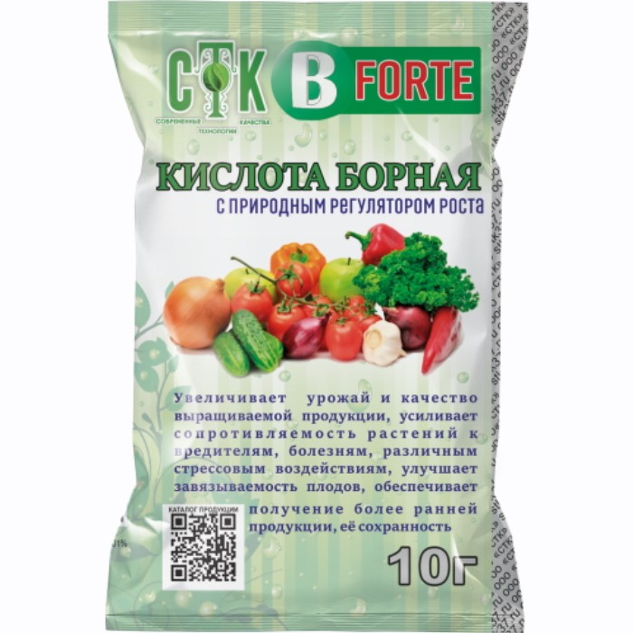 Водорастворимое микроудобрение для подкормки сельскохозяйственных культур в период вегетации. Восполняет дефицит бора в растениях. Применение борной кислоты способствует не только к увеличению урожайности, но и к значительному повышению качества. Улучшение борного питания ведет к повышению сахаристости сахарной свеклы, увеличению содержания витамина С и сахаров в плодово-ягодных культурах, томатах и т.д.