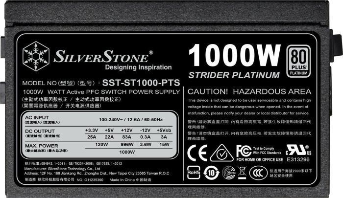 Блок питания SilverStone SST-ST1000-PTS PSU 1000W 1000 Вт, 120 мм, 18 дБ