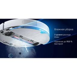 Робот-пылесос Xiaomi Dreame D9 (Уценка - ВТ1)Мощность всасывания составляет 3000 Па. Присутствует 4 режима мощности. Когда на пути робота обнаруживается ковер, то он автоматически увеличивает давление всасывания для наиболее глубокого очищения.Система шумоподавления снижает уровень громкости во время работы пылесоса до 60 дБ. С помощью щетки 2-в-1 осуществляется не только сухая, но и влажная уборка. Ткань швабры состоит из антибактериальных материалов, поэтому уничтожается до 99,9 % бактерий. Пользователь может настроить уровень расхода воды из резервуара. Влажная уборка применяется на площади до 200 м2. Встроены пылесборник на 570 мл и резервуар для воды на 270 мл. Внутри установлены бесщеточный двигатель Nidec, аэродинамическая труба и НЕРА-фильтр.