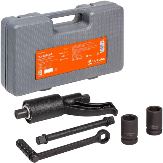 Гайковерт механический Airline AT-MW-02, 1"DR, 3600Нм, 1:64, с головками 32-33мм, в кейсе