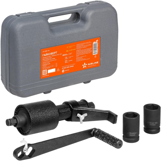 Гайковерт механический Airline AT-MW-06, 1"DR, 4800Нм, 1:56, 1:3.8, двухскоростной, с головками 32-33мм, в кейсе